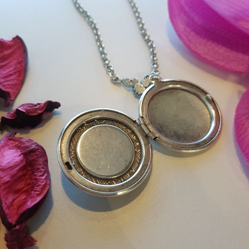 Locket is 32mm in size. It opens and has room for two photos inside.