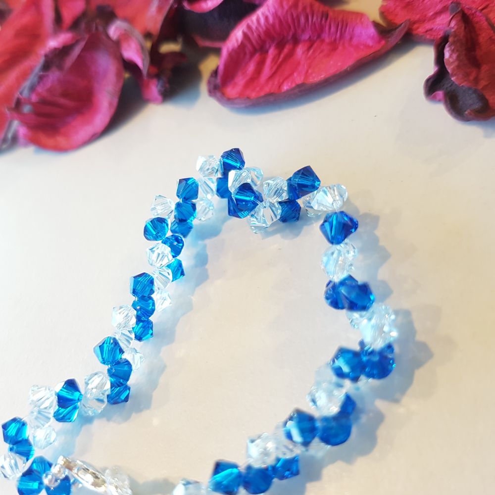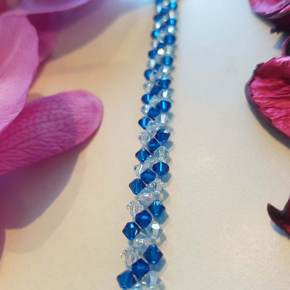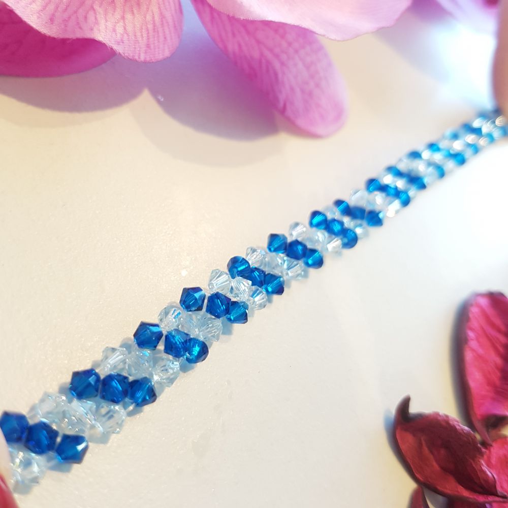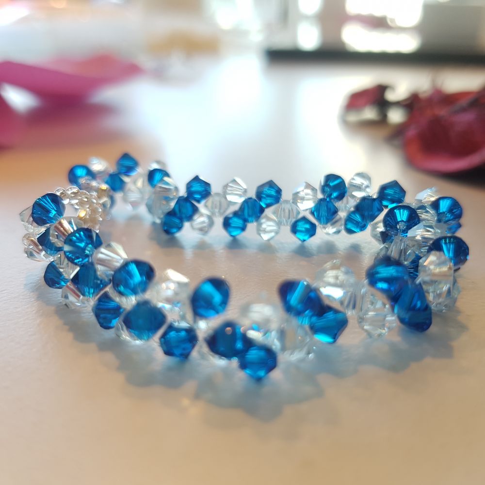 إسوارة مصنوعة يدويا من الكريستال وأحجار السواروفسكي البراقة. يمكنك اختيار ألوان الكريستال التي تناسبك وسنقوم بتصميم القطعة خصيصا لك. تصلح كهدية مثالية بمختلف مناسباتك المميزة.