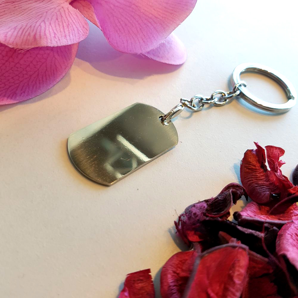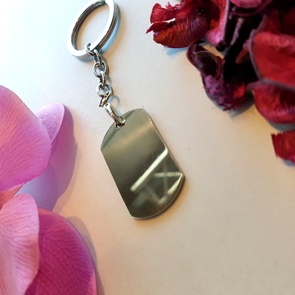 سلسلة مفاتيح تنتهي بقطعة مصنوعة من الستانليس ستيل عالي الجودة. قم باختيار الإسم أو التاريخ أو الرسالة المناسبة لك وسنقوم بنقشها على هذه القطعة لتصبح الهدية المثالية في مناسباتك الخاصة.